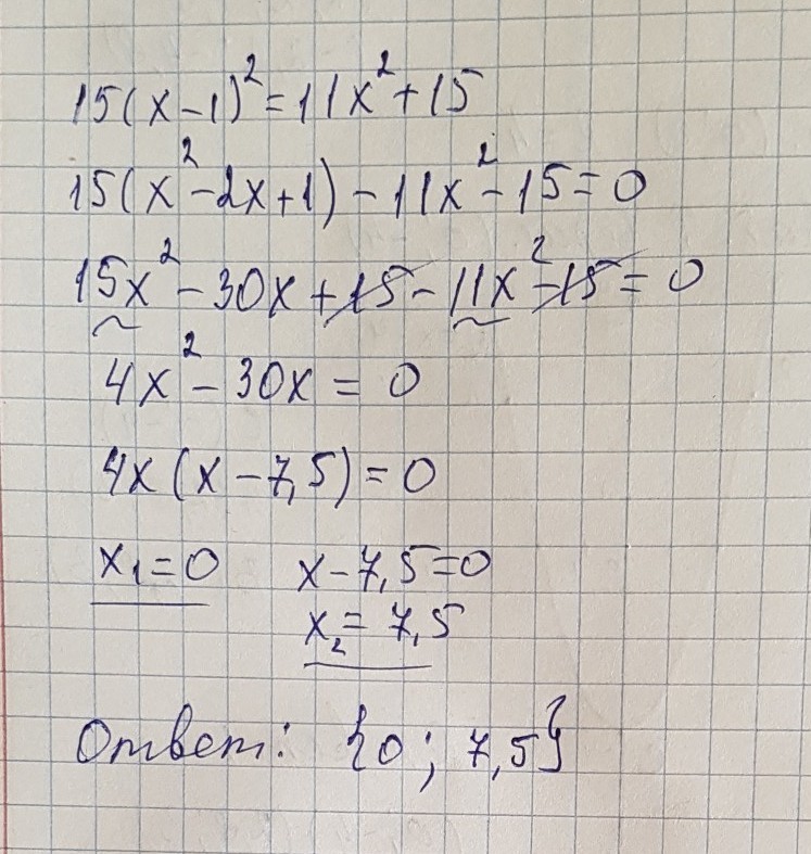 15(х-1)^2=11х^2+15 помогите срочно! Надо решить по формуле