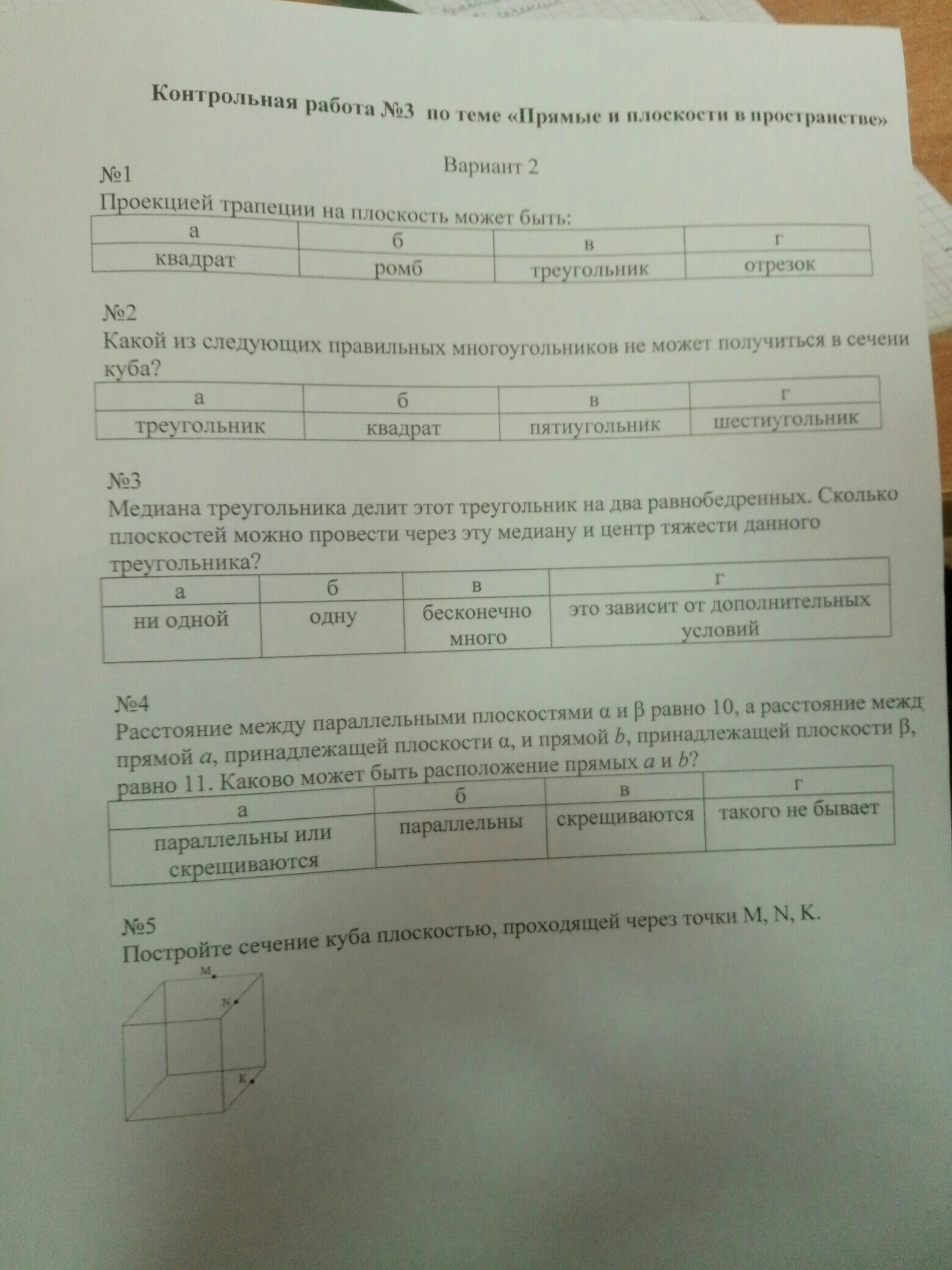 4) А, так как две прямые пересекают плоскости, поэтому могут быть как параллельные, так и скрещивающиеся, тем более не сказано как они расположены: параллельно или в угол