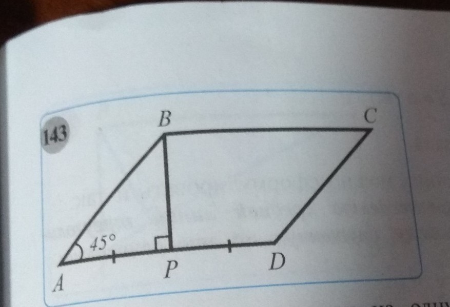 на рисунке изображен параллелограмм ABCD с высотой BP. Найдите S, если AP=PD, BP=6.4см и угол A=45°