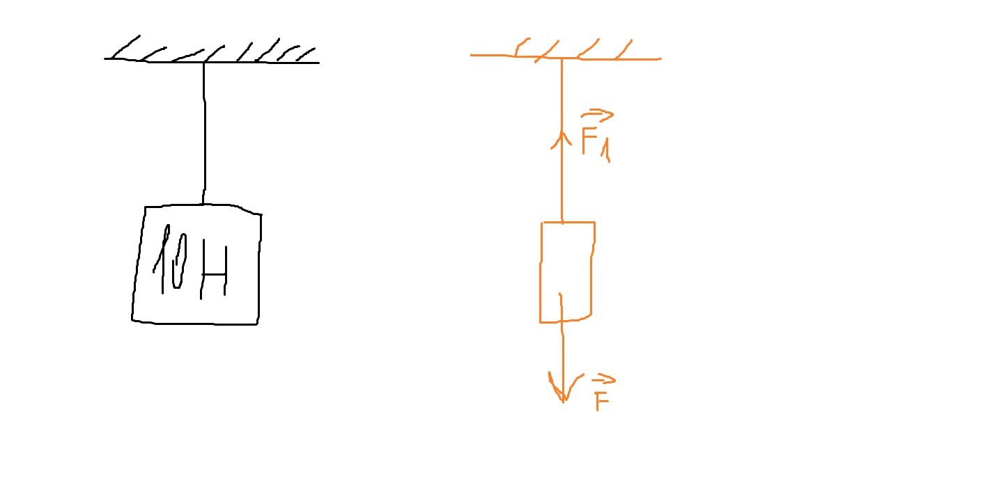 F — сила тяжести, действующая на груз, и F1 — сила упругости нити.