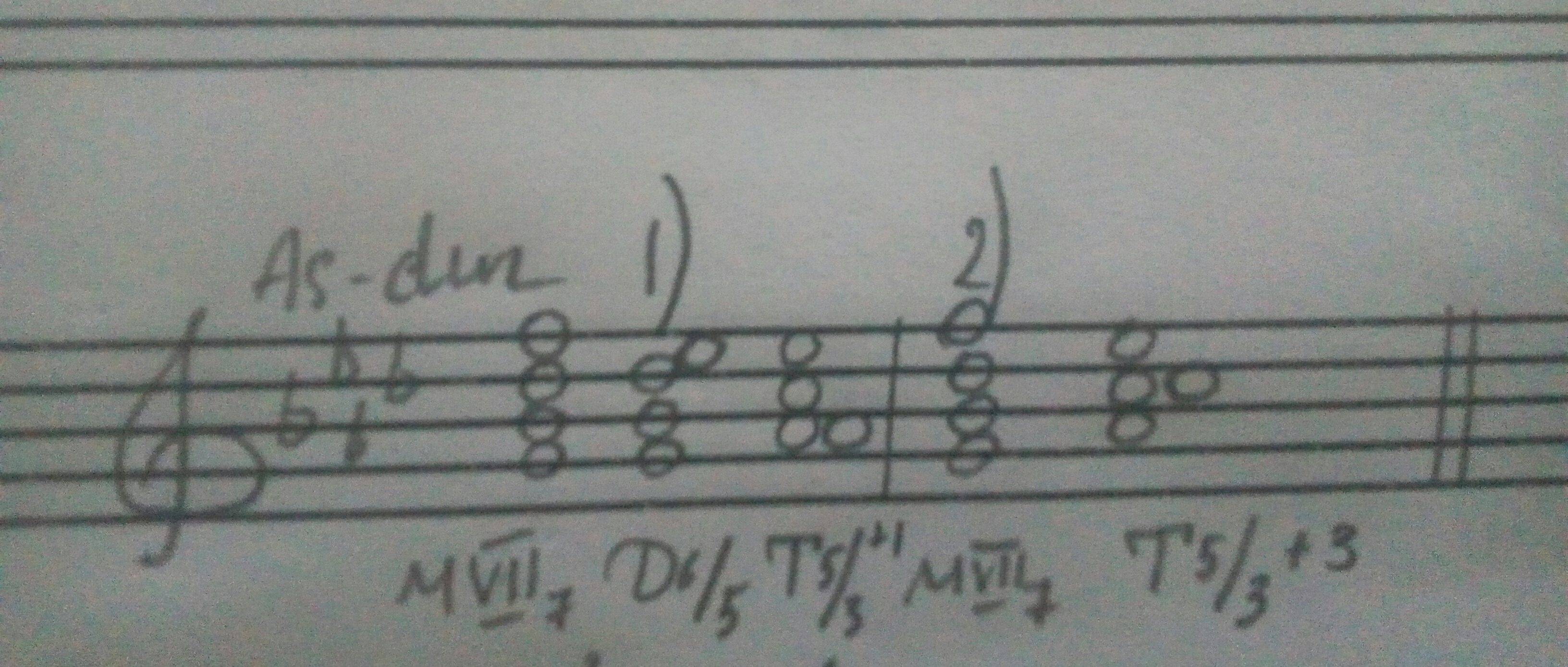 1. Разрешение через доминантовый квинтсекстаккорд в тоническое трезвучие с удвоенным основным тоном.