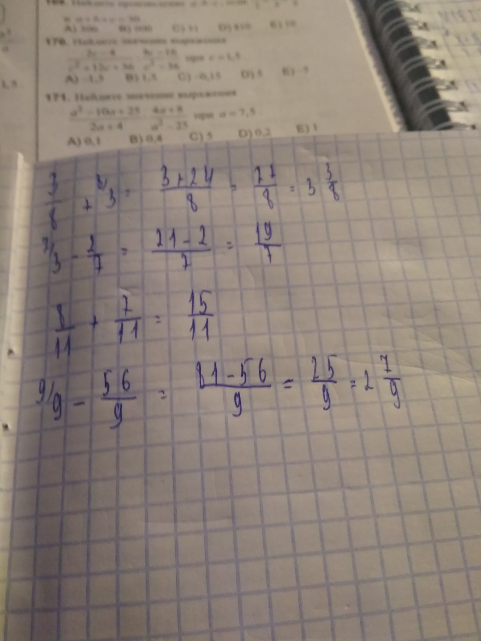 Ответ:1)27/8 2)19/7 3)15/11 4)25/9