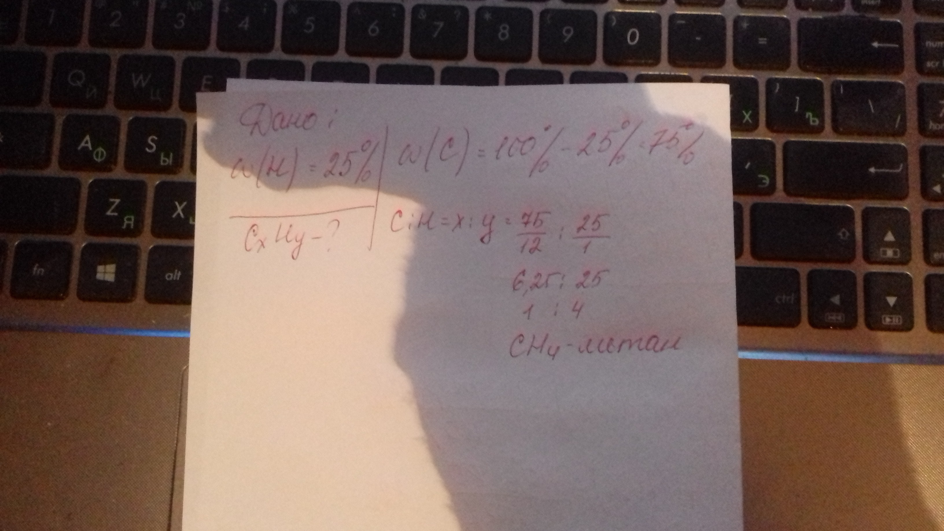 Массовая доля водорода в соединении с углеродом равна 25%. Какова формула этого вещества вроде CH4. Нужно оформить как задачу.