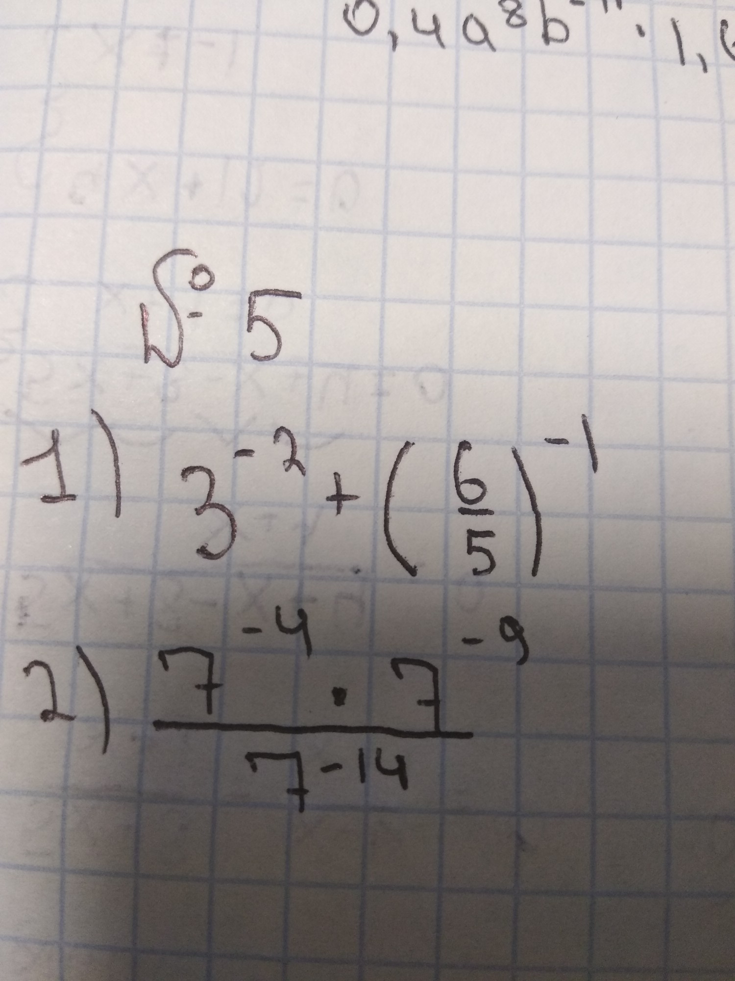 1) 3⁻²+()⁻¹ =