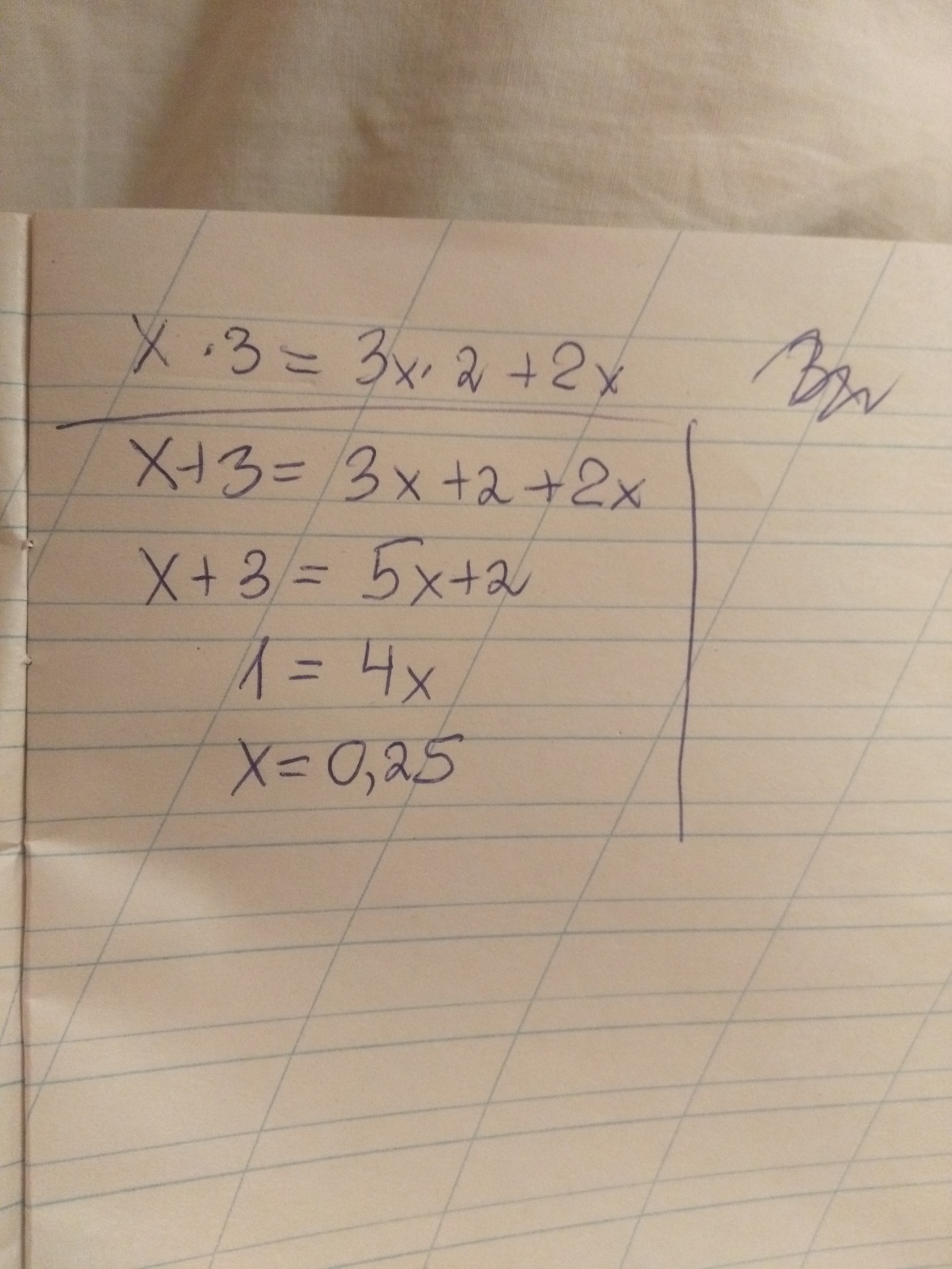 Вот так решается.Сначала считаем все в правой части,потом все с х переносим в правую,числа в левую