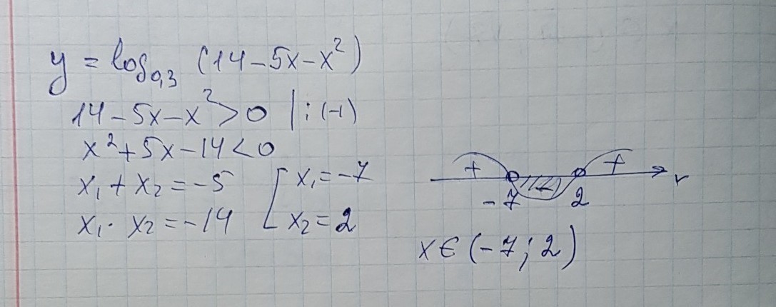 Найдите область определения функции y=log0,3(14-5x-x^2)