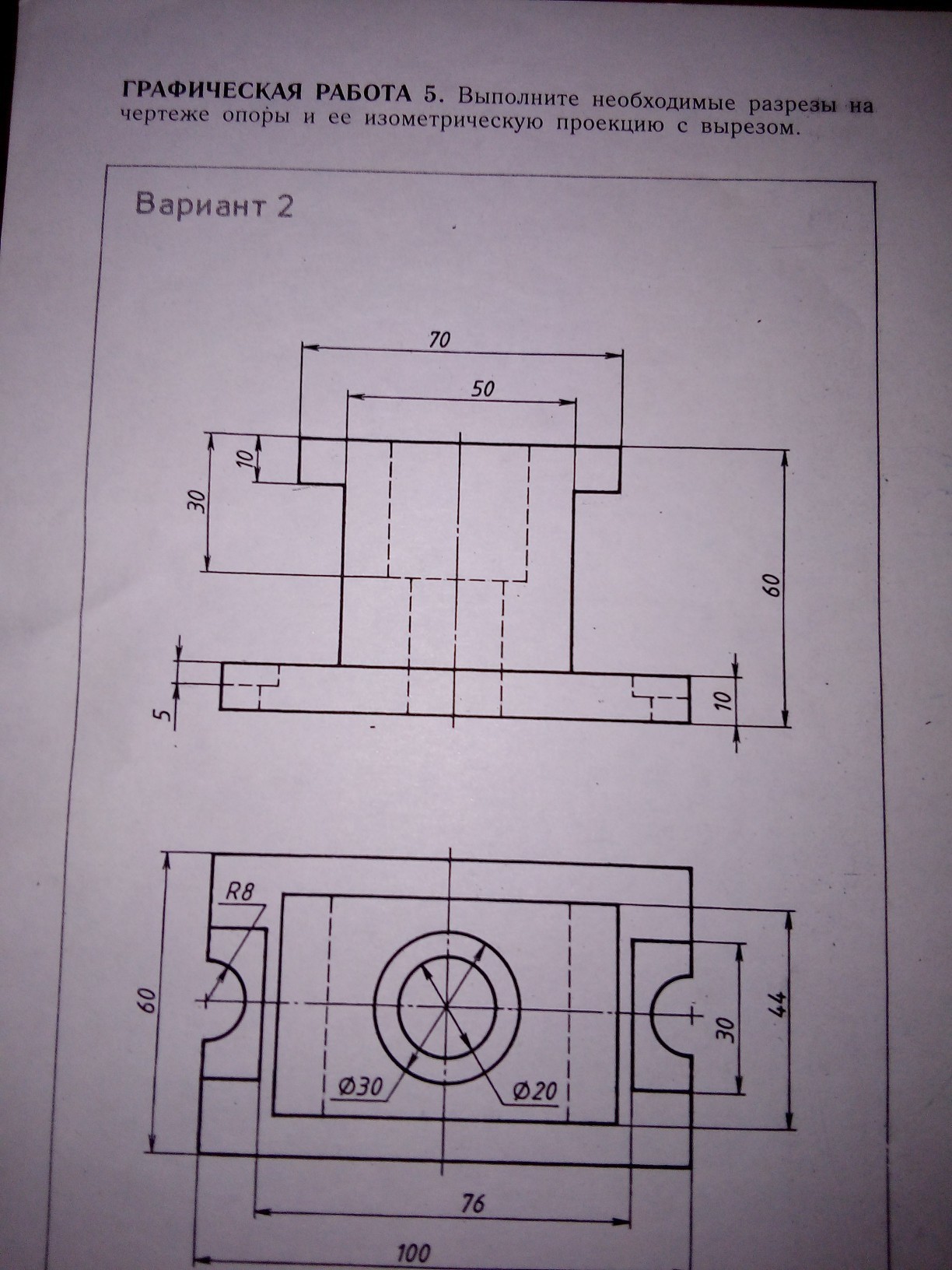 Графическая работа номер 5 выполните необходимые разрезы на чертеже опоры и изометрическую проекцию с вырезом