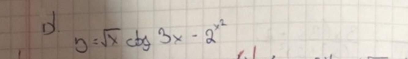 y'=(√x)'ctg3x+ctg'3x*√x-(2^x²)'=