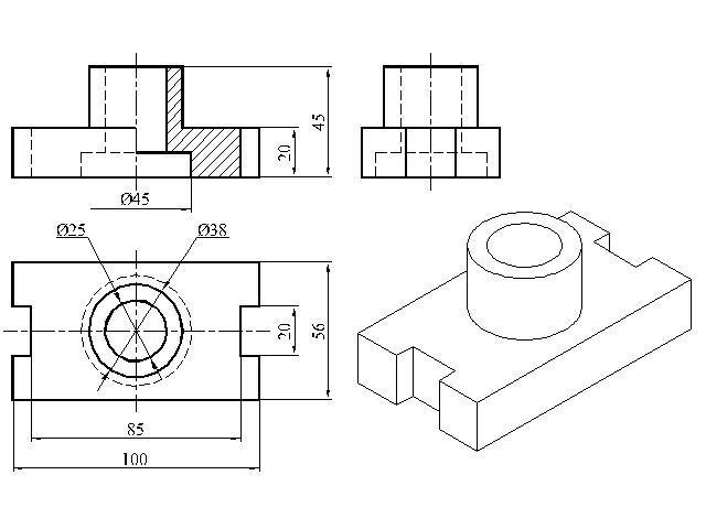 По двум видам построить третий и деталь в изометрии, достроить фронтальное изображение и вид сверху
