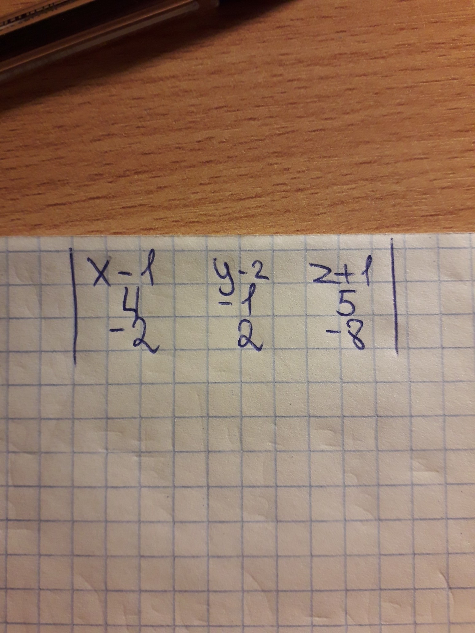 detA = (x - 1)*(8 - 10) - (y - 2)*(-32 + 10) + (z + 1)*(8 - 2) = -2x + 2 + 22y - 44 + 6z + 6 = -2x + 22y + 6z -36
