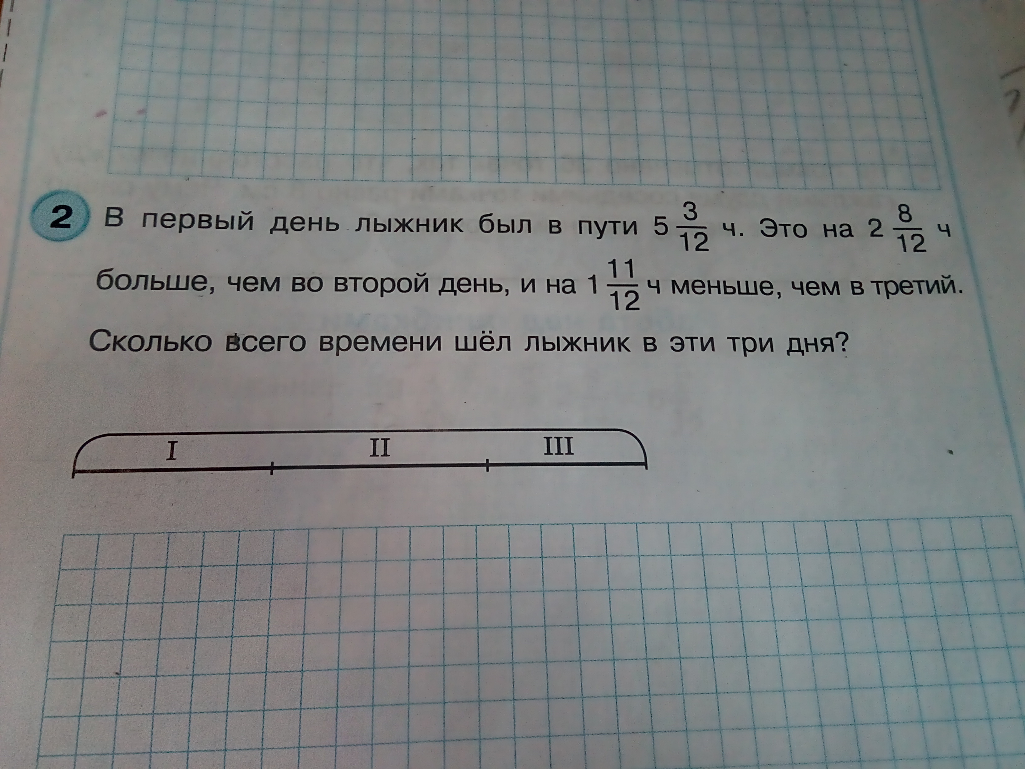 3. Третий день: 63/12+1¹¹/₁₂=(63/12)+(23/12)=86/12.