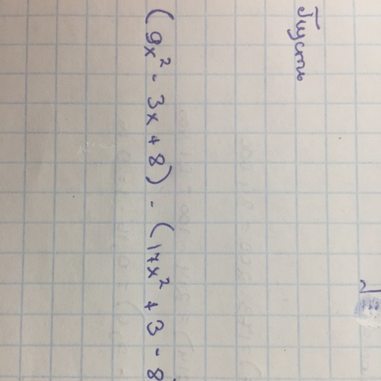 (9x^2 - 3x + 8) - (17x^2 + 3х - 8) = 9x^2 - 3x + 8 - 17х^2 - 3х + 8 = -8х^2 - 6х + 16