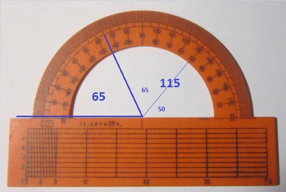 (180 - 50)/2 = 130/2 = 65° - малый угол