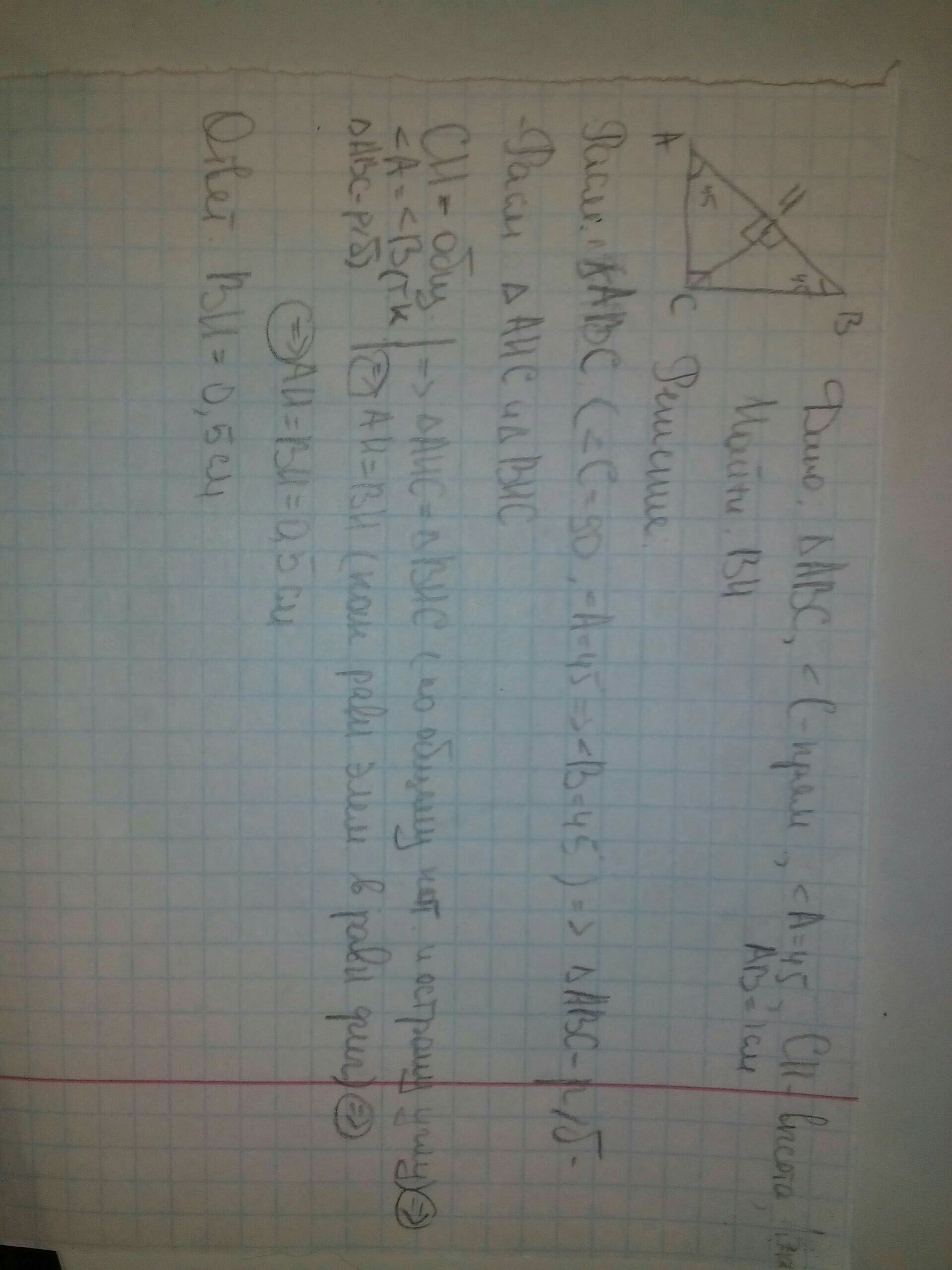 В треугольнике ABC угол C равен 90 градусов CH высота угол A равен 45° AB равен одному Найдите BH