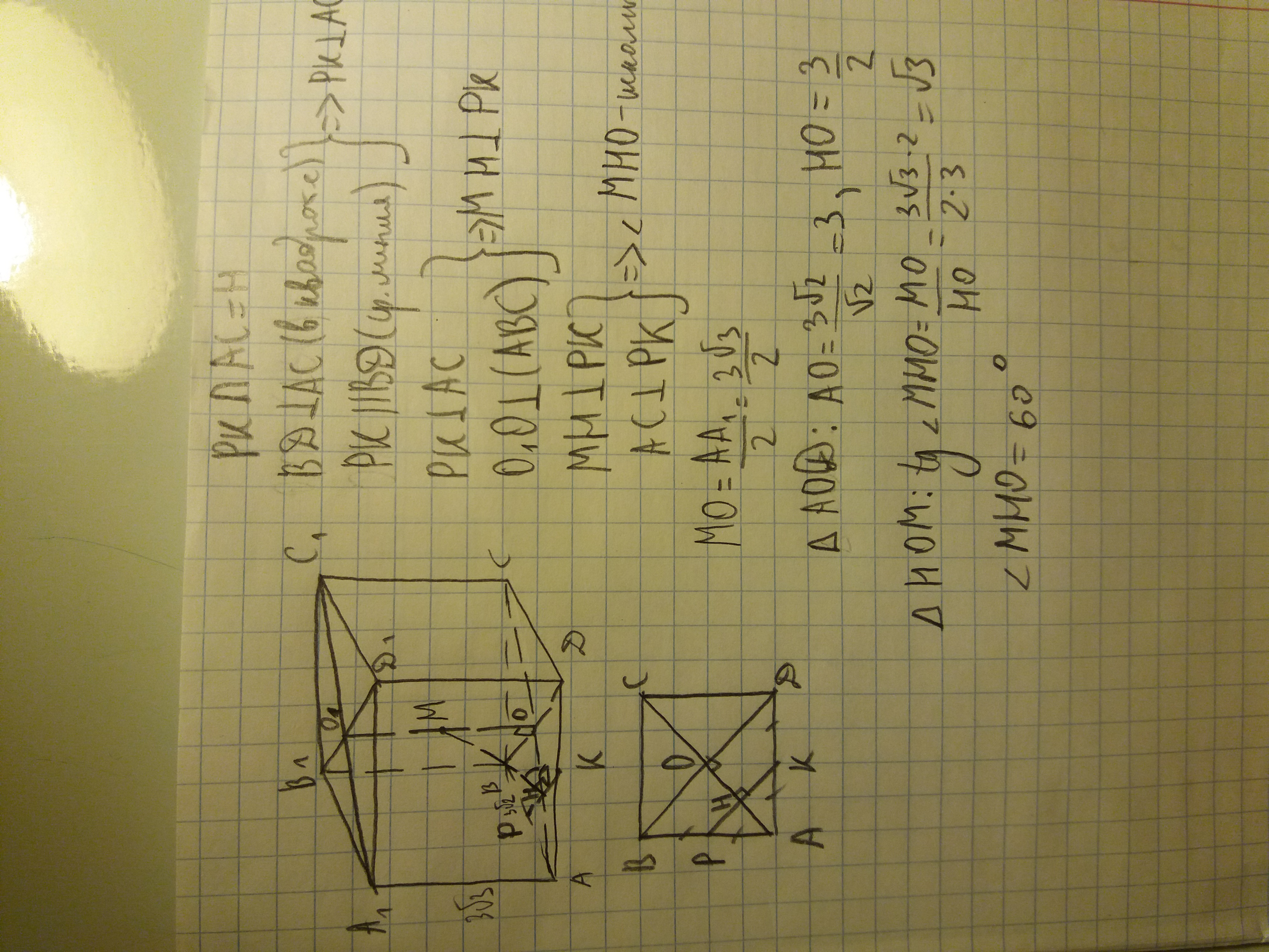 - центры оснований призмы, точки P и K - середины ребер AB и AD соответственно; точка M - середина отрезка