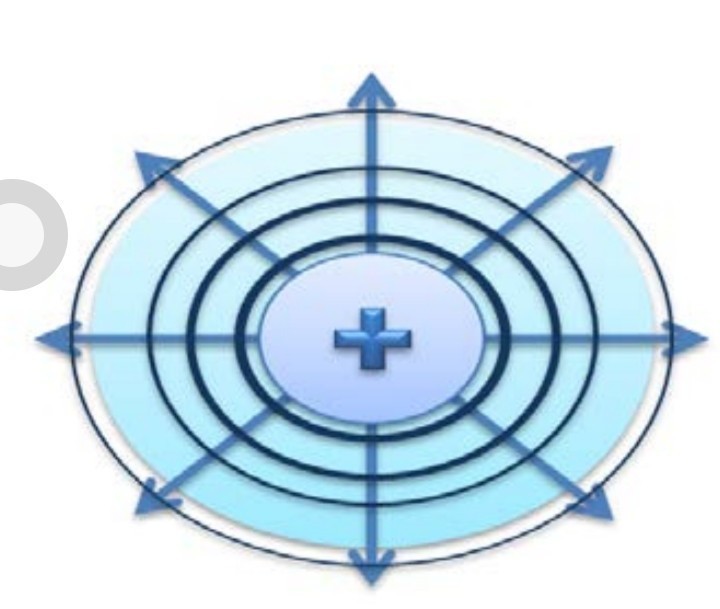 A) Электрическое поле заряда ослабевает по мере удаления от заряда