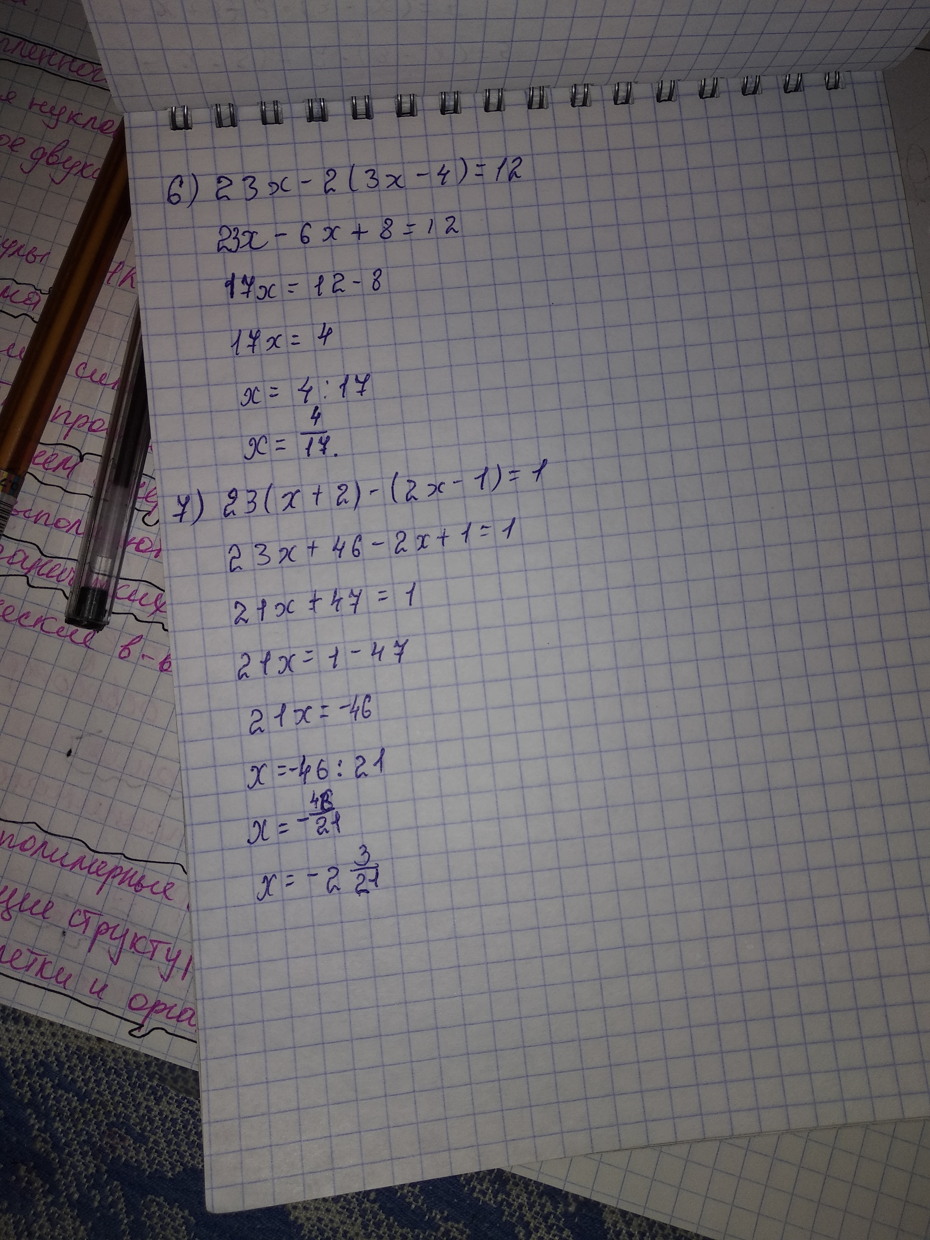 7)23(x+2)-(2x-1)=1