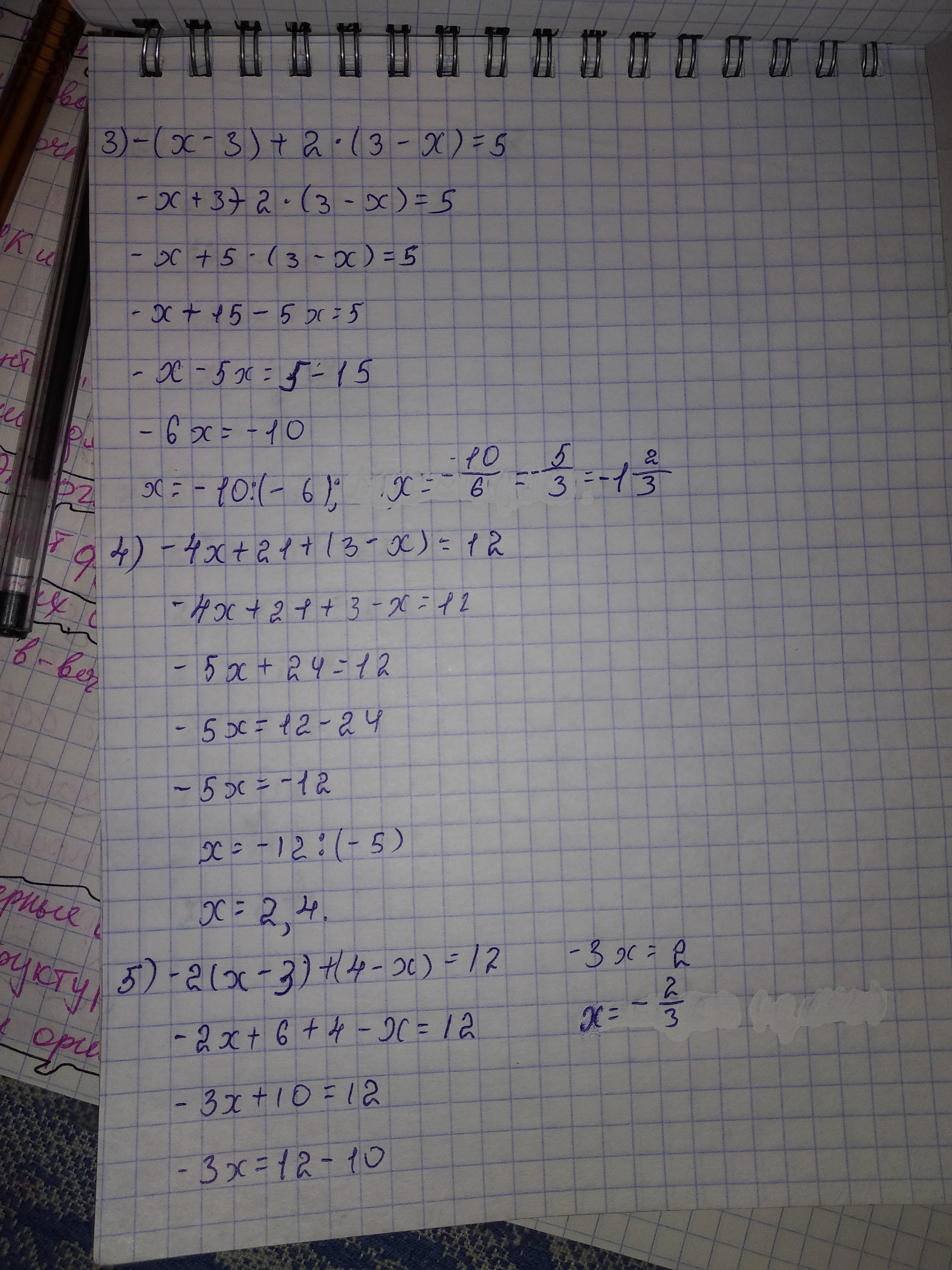 5) -2х+6+4-х=12