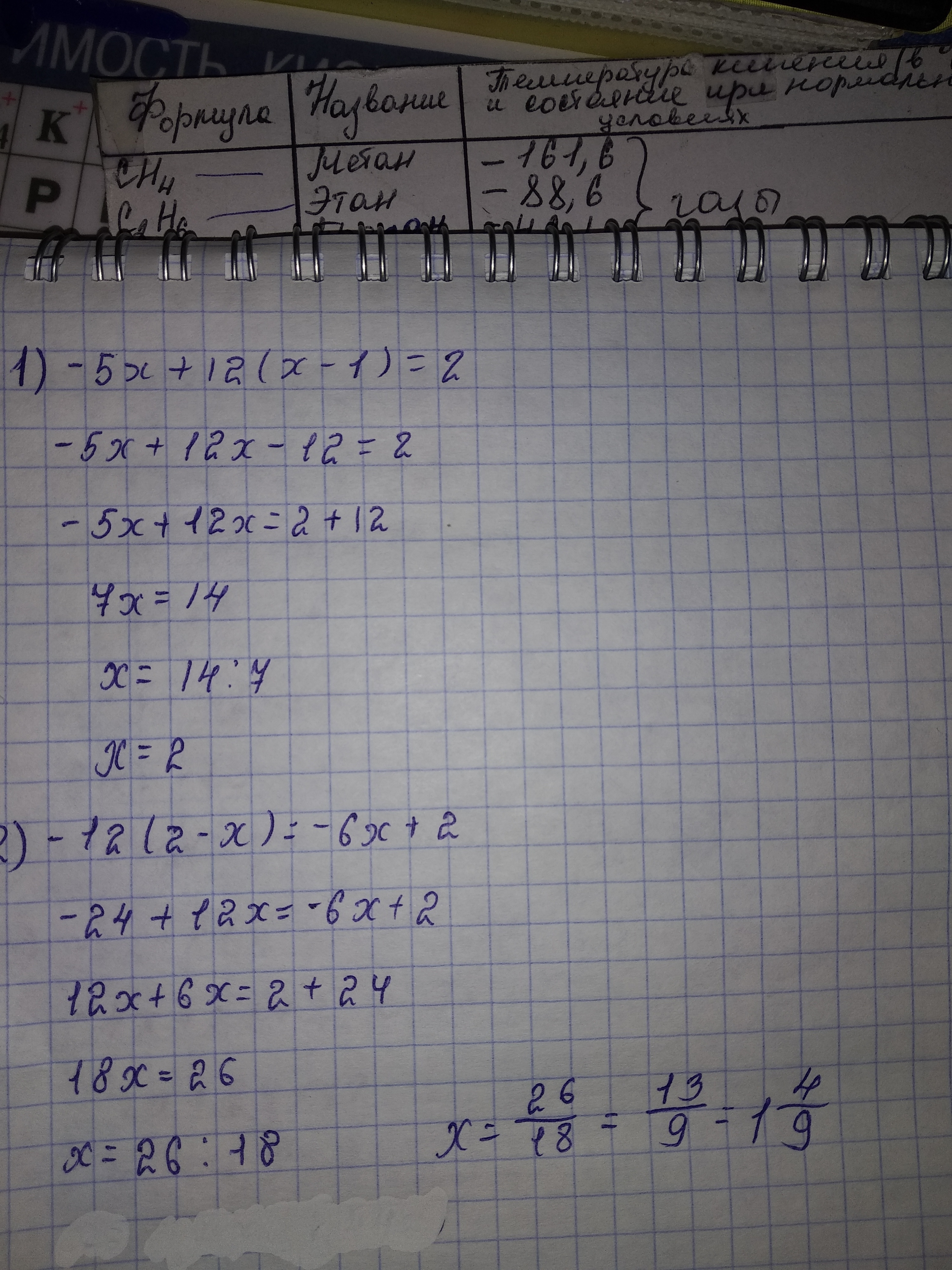 1) -5х+12(х-1)=2