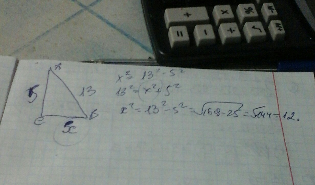 Для этого построения нам надо найти второй катет прямоугольного треугольника, в котором один катет равен 5, гипотенуза - 13.
