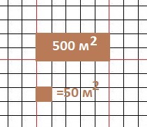 5 а = 500 м² = 500/50 = 10 клеток в тетради.