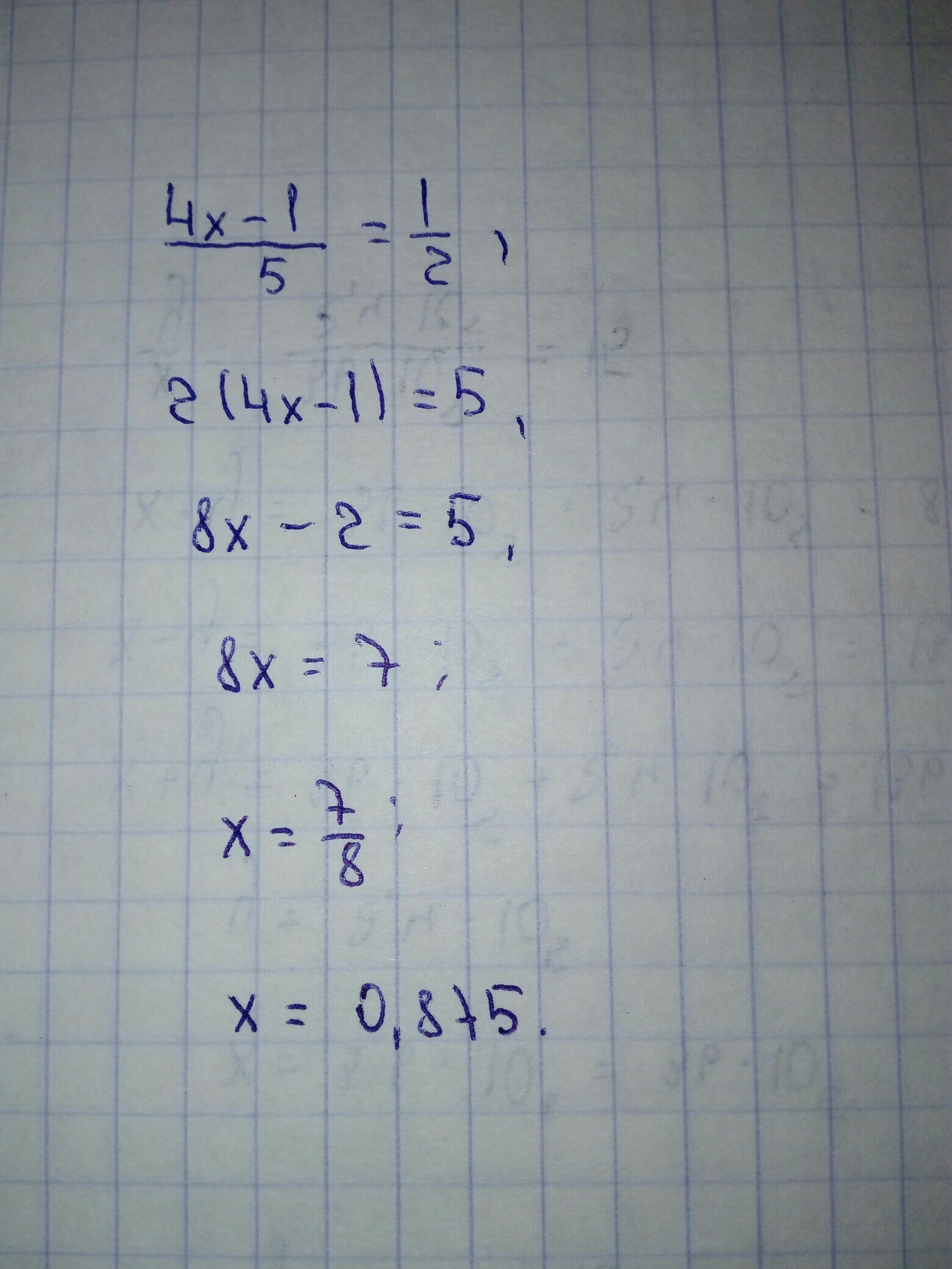 (4x-1)*2=5*1