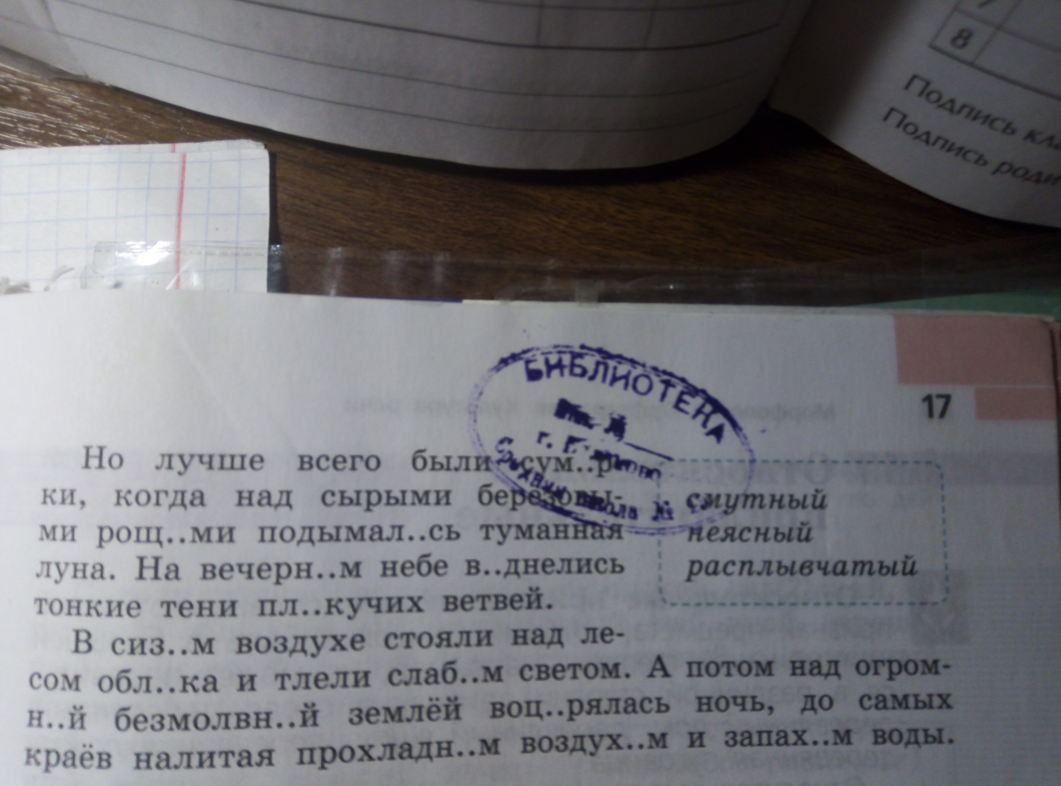 (над) рощами- имя сущ, обозначает предмет, н.ф.- роща (что?), ж.р,1 скл, неодуш, нариц, мн.ч, Т.п., обстоятельство...(в) воздухе- имя сущ, обозначает предмет, н.ф.- воздух (что?), м.р, 2 скл, неодуш, нариц, ед.ч, П.п., обстоятельство...Ночь- имя сущ, обозначает предмет, н.ф.- ночь, ж.р, 3 скл, неодуш, нариц, ед.ч, И.п, подлежащее.
