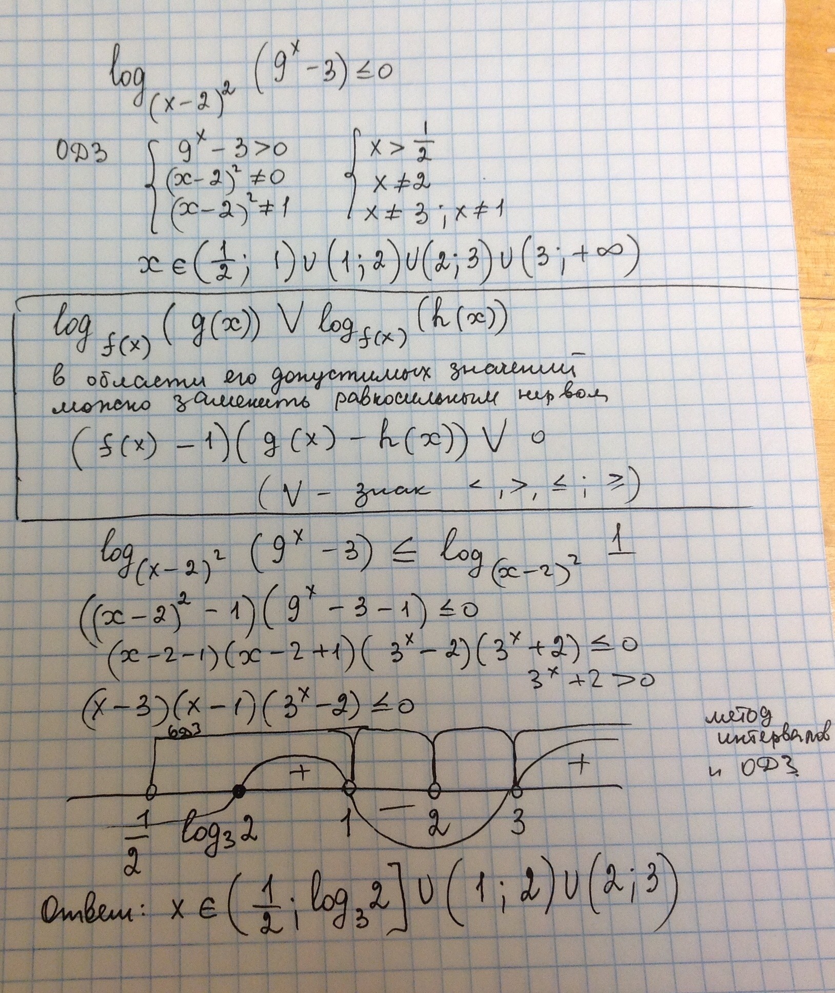 x ∈ (1/2 ; log_₃2] ∪ (1 , 2) ∪ (2 ; 3)