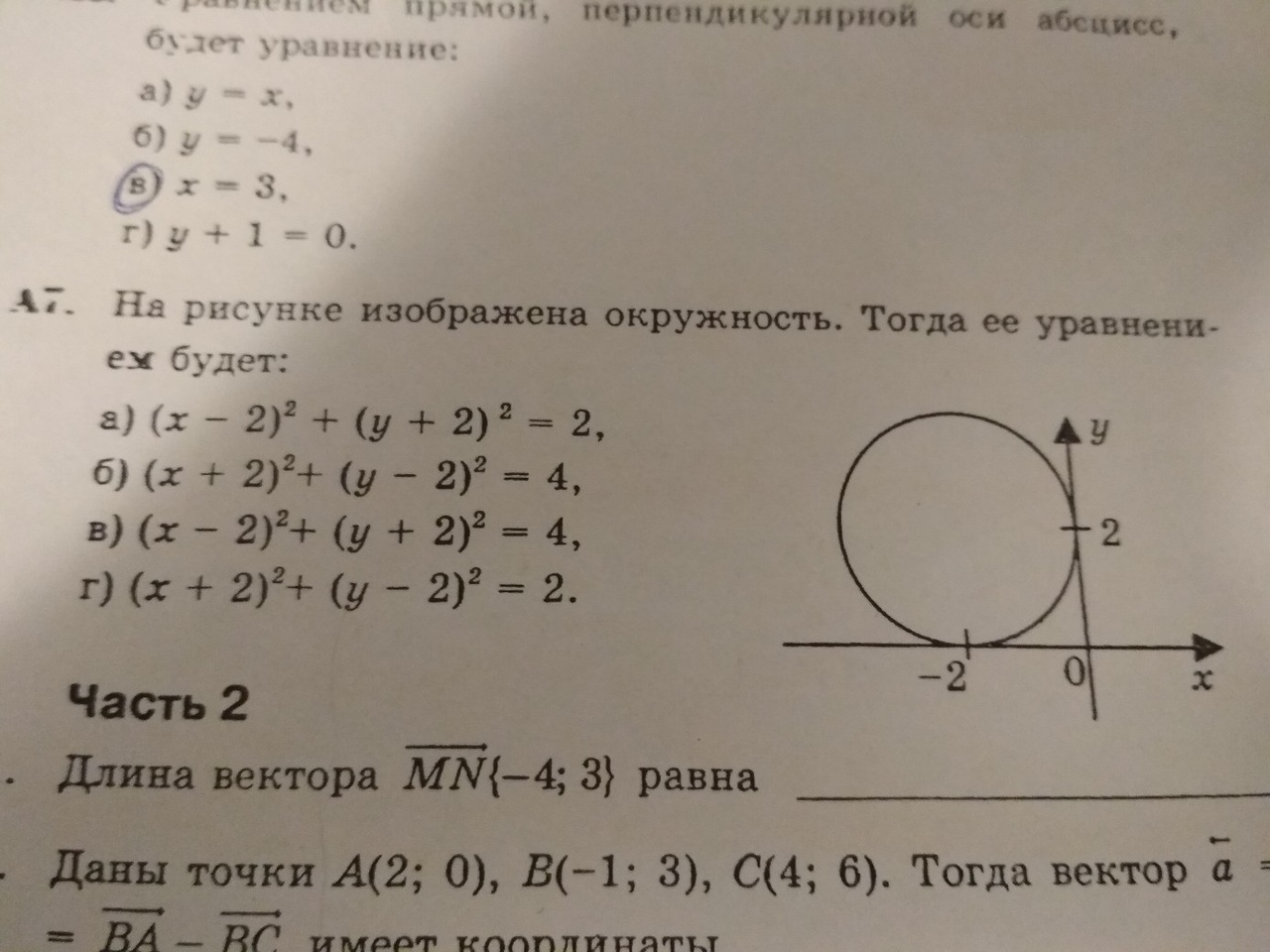 Координаты центра окружности, представленной на рисунке, (-2; 2), т.е. х₀=-2, у₀=2.