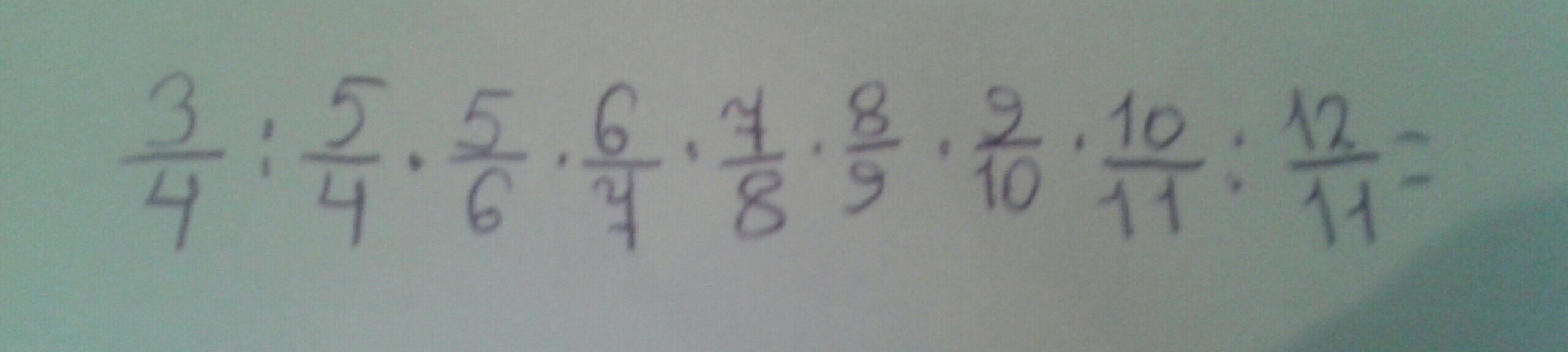 3/4 : 5/4 * 5/6 * 6/7 * 7/8 * 8/9 * 9/10 * 10/11 : 12/11 = 3/4 * 4/5 * 5 * 1/11 * 11/12 = 1/4