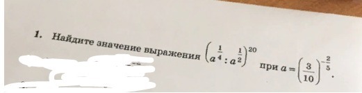 (a^{frac{1}{4}} :a^{frac{1}{2}})^{20}}} =(a^{-frac{1}{4}})^{20}=a^{-5}\\a=(frac{3}{10})^{-frac{2}{5} }\\((frac{3}{10})^{-frac{2}{5}})^{-5}=(frac{3}{10}) ^{2}=0,09