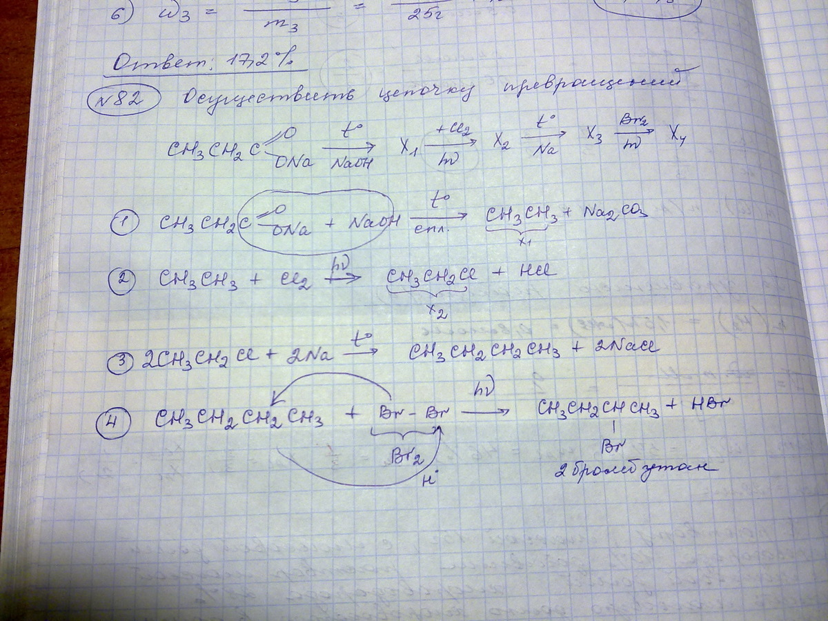 Осуществите схему: C2H5COONa--t NaOH--->x1--hv Cl2--->x2---t Na--->x3--hv Br2--->x4.