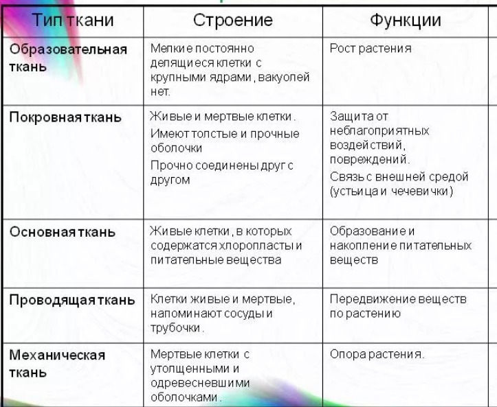 Название ткани Выполняемая функция Особенности строения