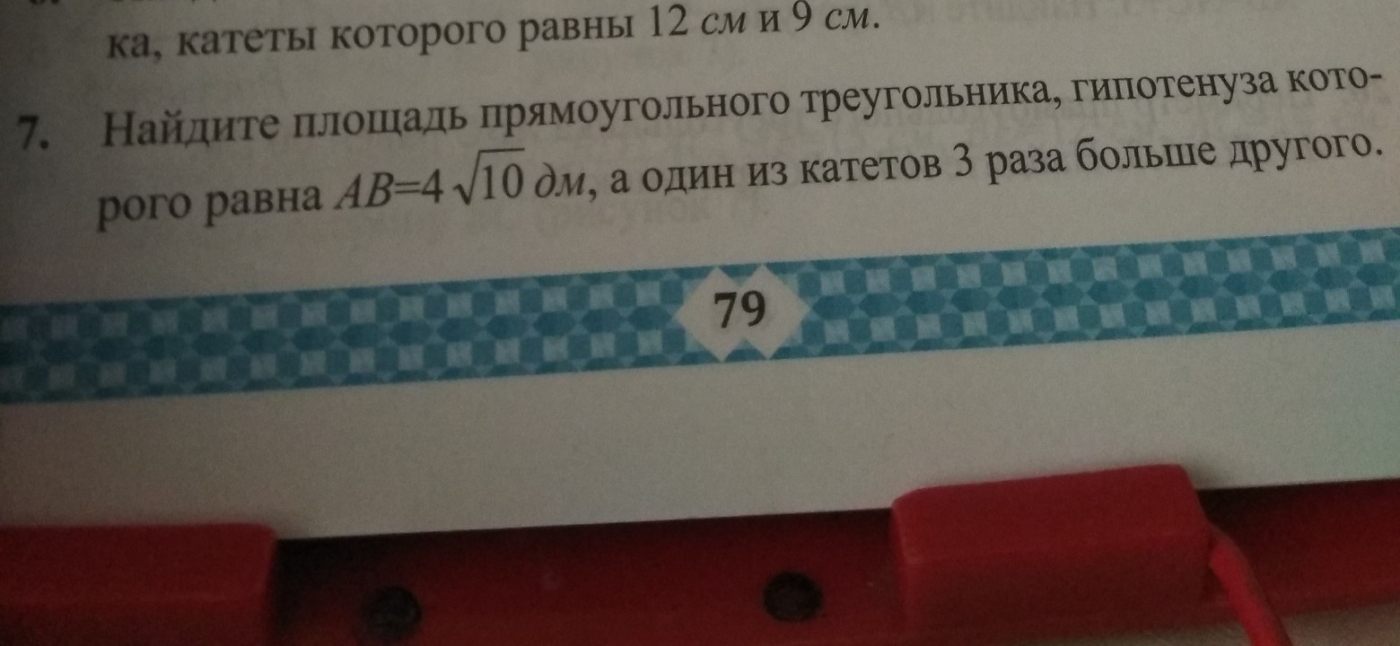 Пусть x дм -- один из катетов, тогда 3x дм -- другой катет.
