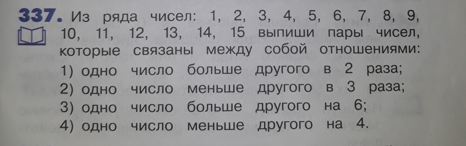 г) 1 и 5; 2 и 6; 3 и 7; 4 и 8; 5 и 9; 6 и 10; 7 и 11; 8 и 12; 9 и 13; 10 и 14; 11 и 15.