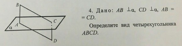 Решение: данный четырехугольник является параллелограммом, т.к. противоположные стороны равны(АВ=СД) и параллельны(АВ и СД ⊥α)