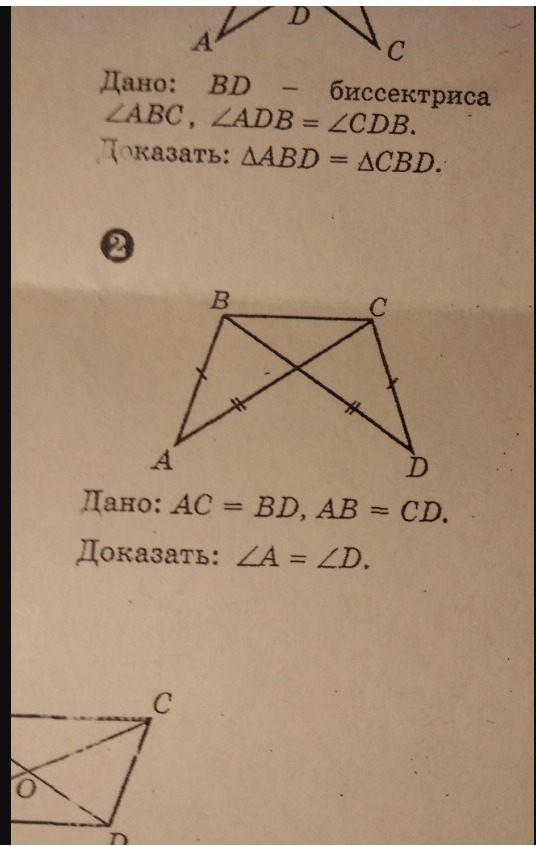 AB=DC, AC=DB, BC-общ. сторона, следовательно треуг.ABC= треуг.DBC, следовательно угол А=углу D