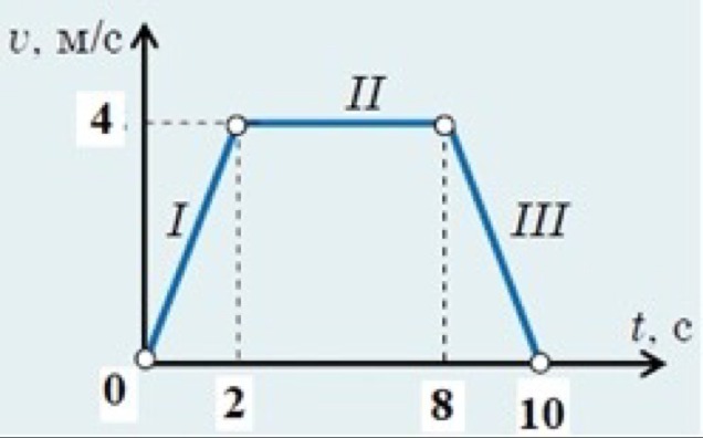 Для материальной точки,график скорости которой представлен на рисунке,найдите проекцию перемещения за первые 8 секунд движения.