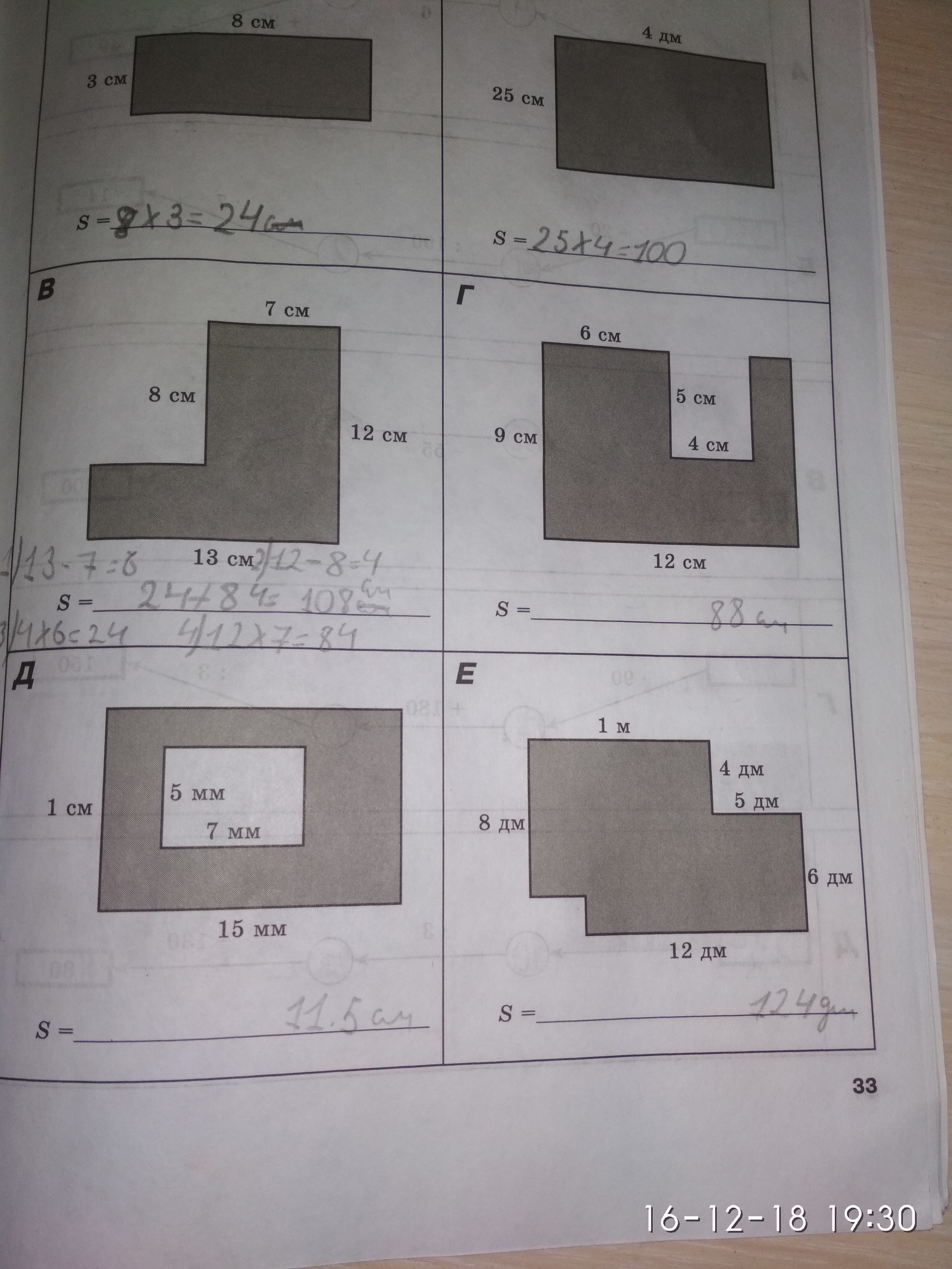 Е не знаю, как получилось 124, но у меня (10*8)+(5*6)+(12*2)=134дм