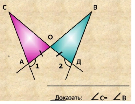 АО=ОД, по условию, следовательно треугольник АСО подобен треугольнику ДБО, то угол С = углу В