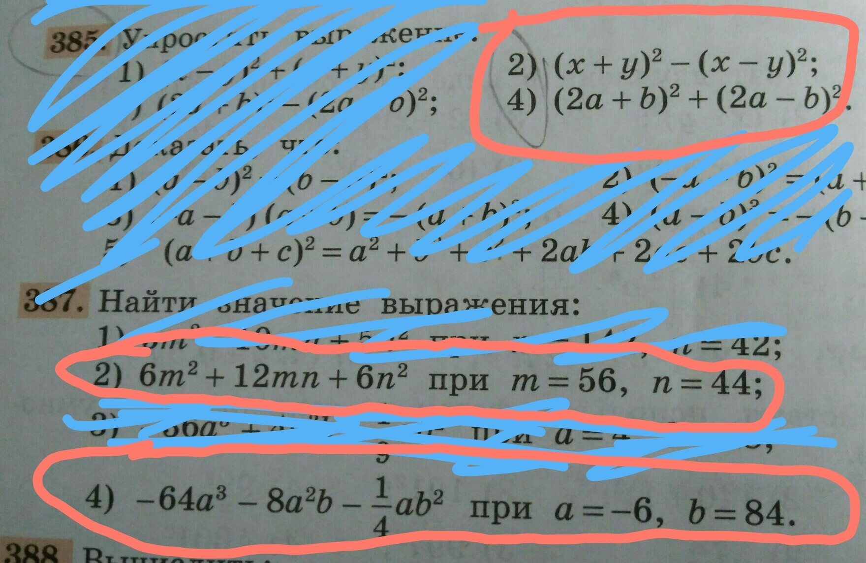 385. 2) х²+2xy + y² - x²+2xy-y² =4xy