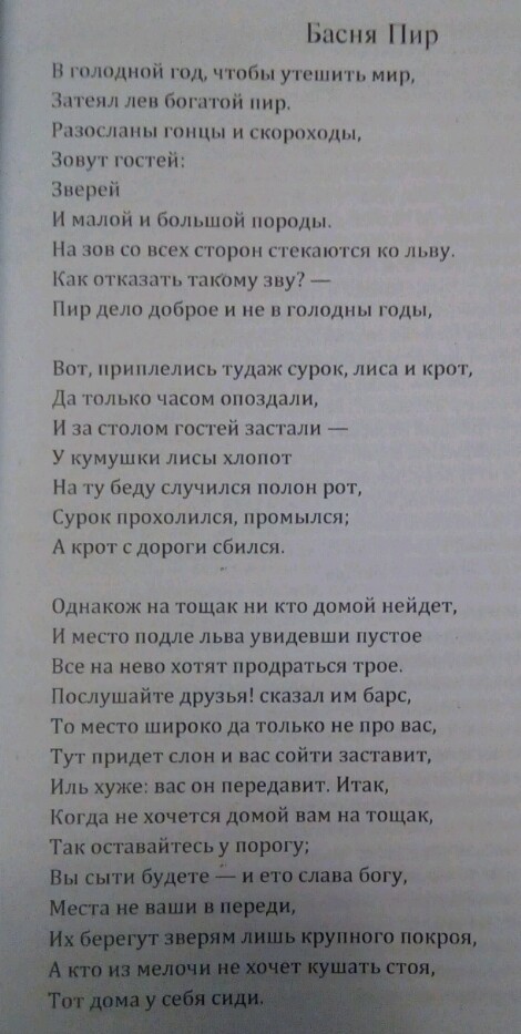 О ком из зверей в басне И.А. Крылова "Пир" можно сказать, что он тщательно ухаживает за собой? Докажите примером из текста.