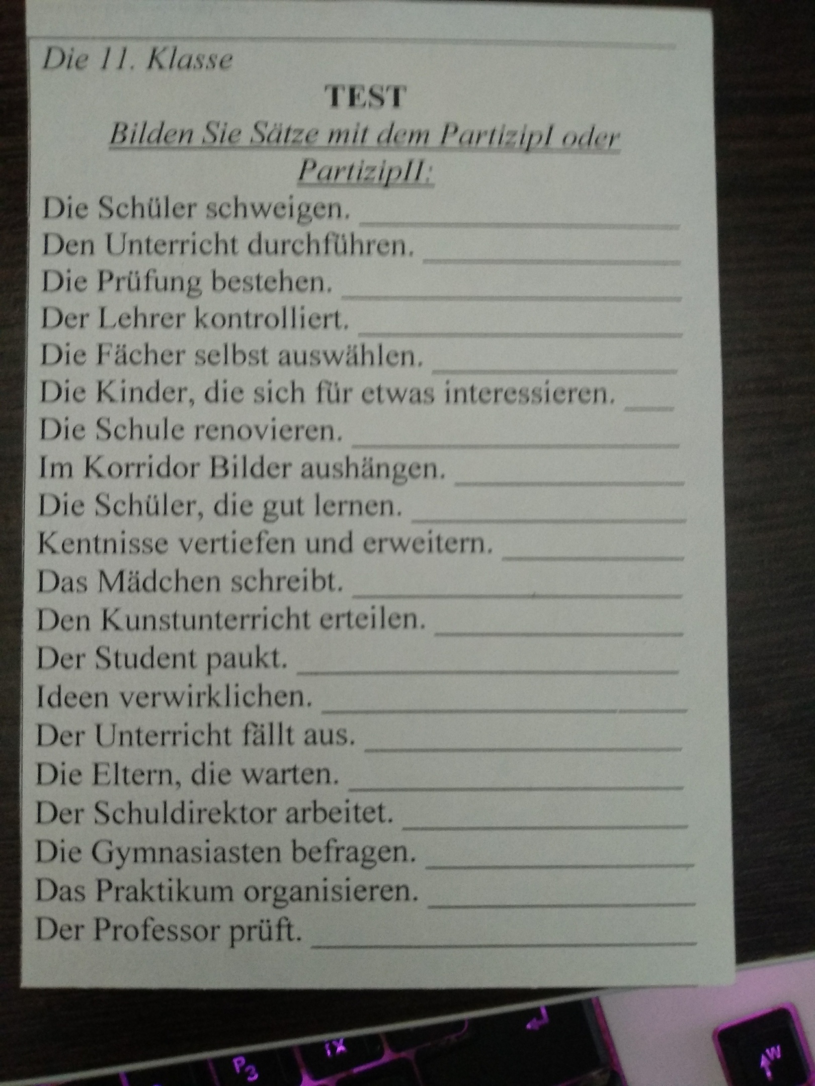 1. Die schweigenden Schüler schrieben die Kontrollarbeit.