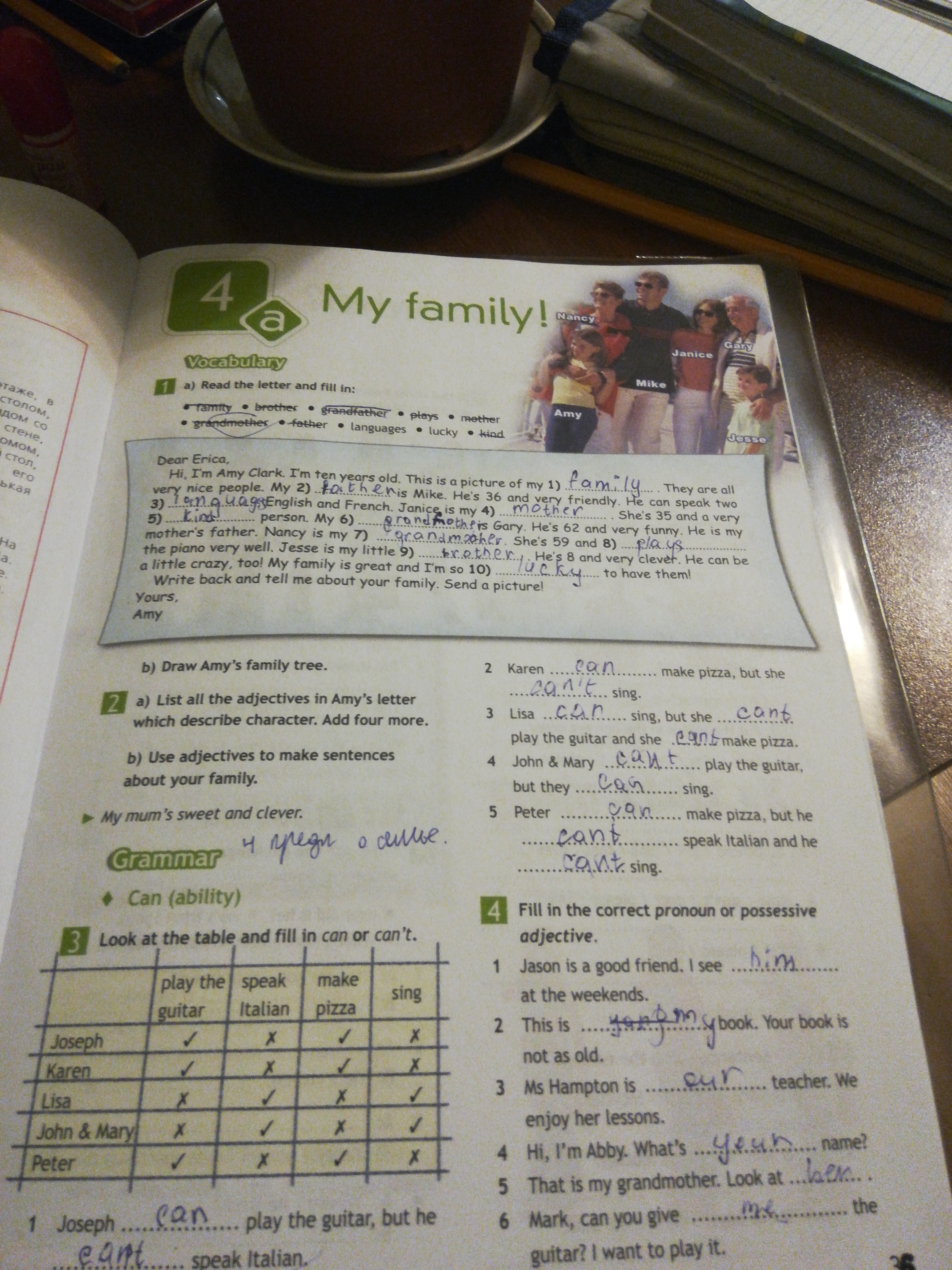 2) Нужно самому сделать, ибо там написано, что ты должен использовать эти прилагательные, чтобы описать свою семью.