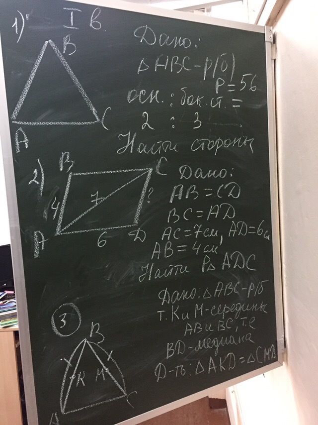 Пусть сторона АВ = 2х, тогда сторона ВС = 2х, сторона АС = 3х. Р = 56. Составим уравнение.