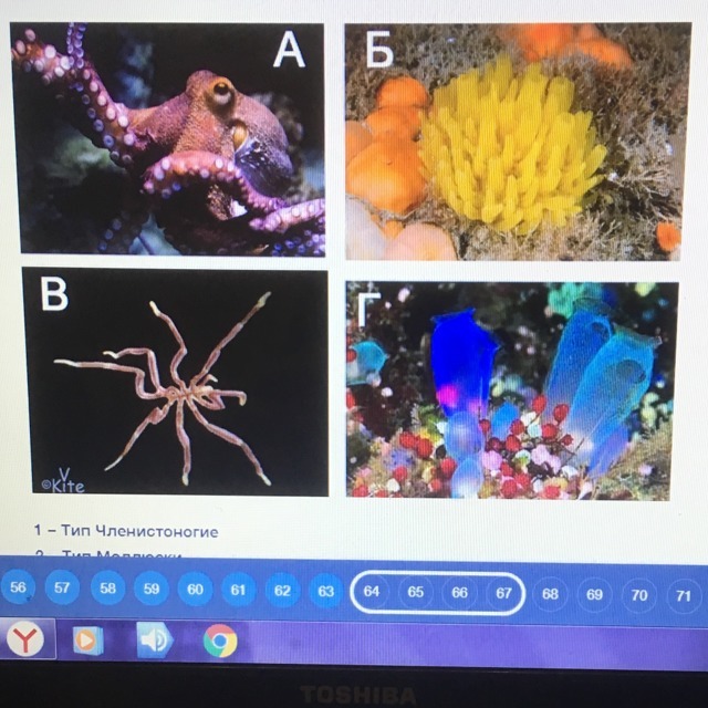 К каким типам относятся животные,изображённые на иллюстрациях?
