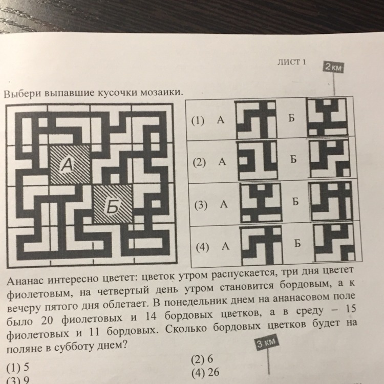 2. к среде 14 бордовых цветов все облетают, значит, из 20 цветов 11 стали бордовыми, т.е. 15 - (20 - 11) = 6 цветов открылось новых