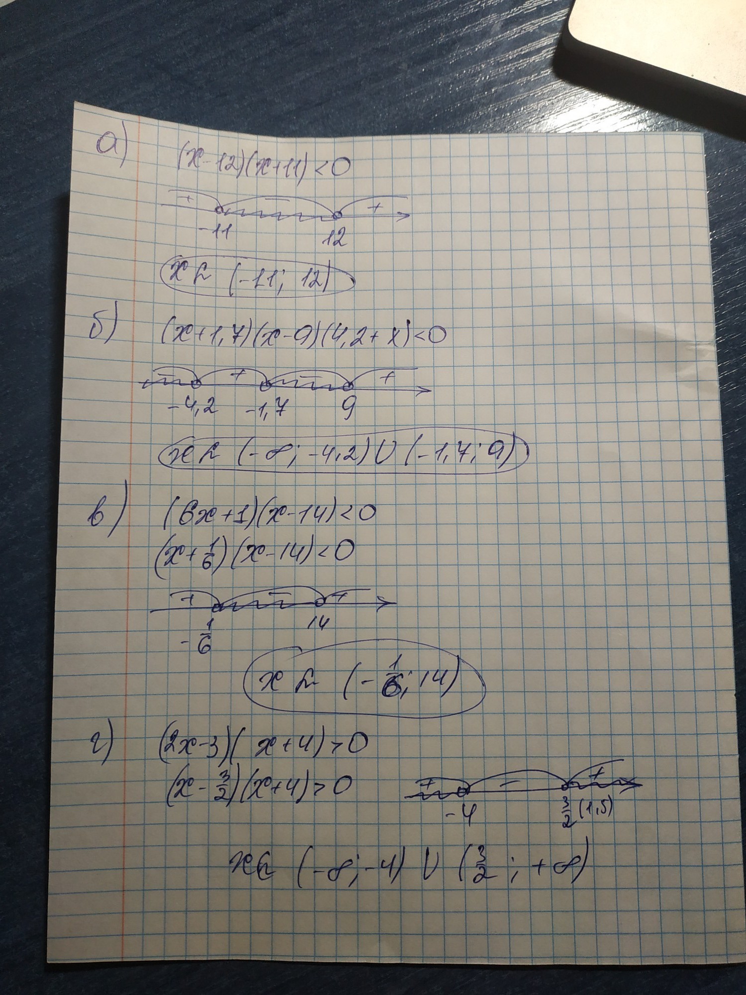б) (х + 1,7)(х – 9)(4,2 + х) < 0