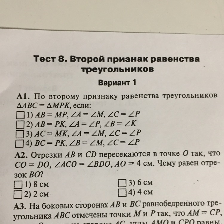 А2-4) Т.к. треугольники равные по второму признаку, значит и отрезки равна, то есть АО=ВО
