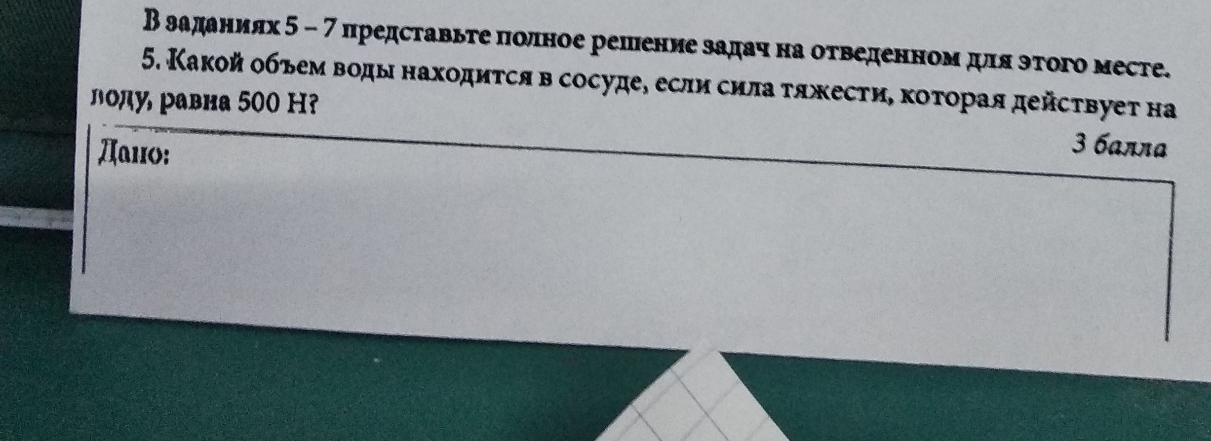 F = 500Н g = 10Н/кг ро = 1000кг/м^3